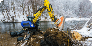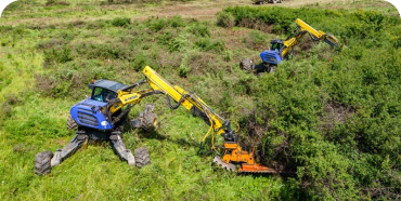 Pomocí specializovaných adaptérů jsme schopní realizovat odstranění náletových dřevin i na rozlehlých a obtížně přístupných plochách. Pokud je to možné, získanou dřevní hmotu štěpkujeme a využíváme pro energetické účely s ekologickým a ekonomickým efektem pro investora.